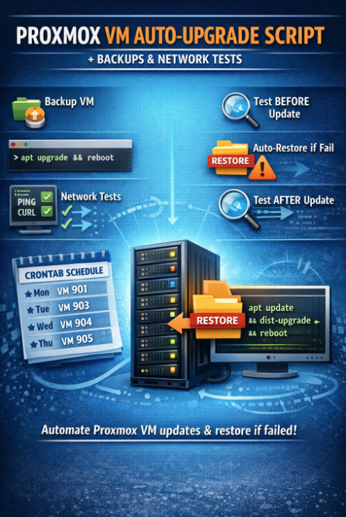 Proxmox VM Auto-Upgrade Script (qm + vzdump) with Network Tests and Auto-Restore